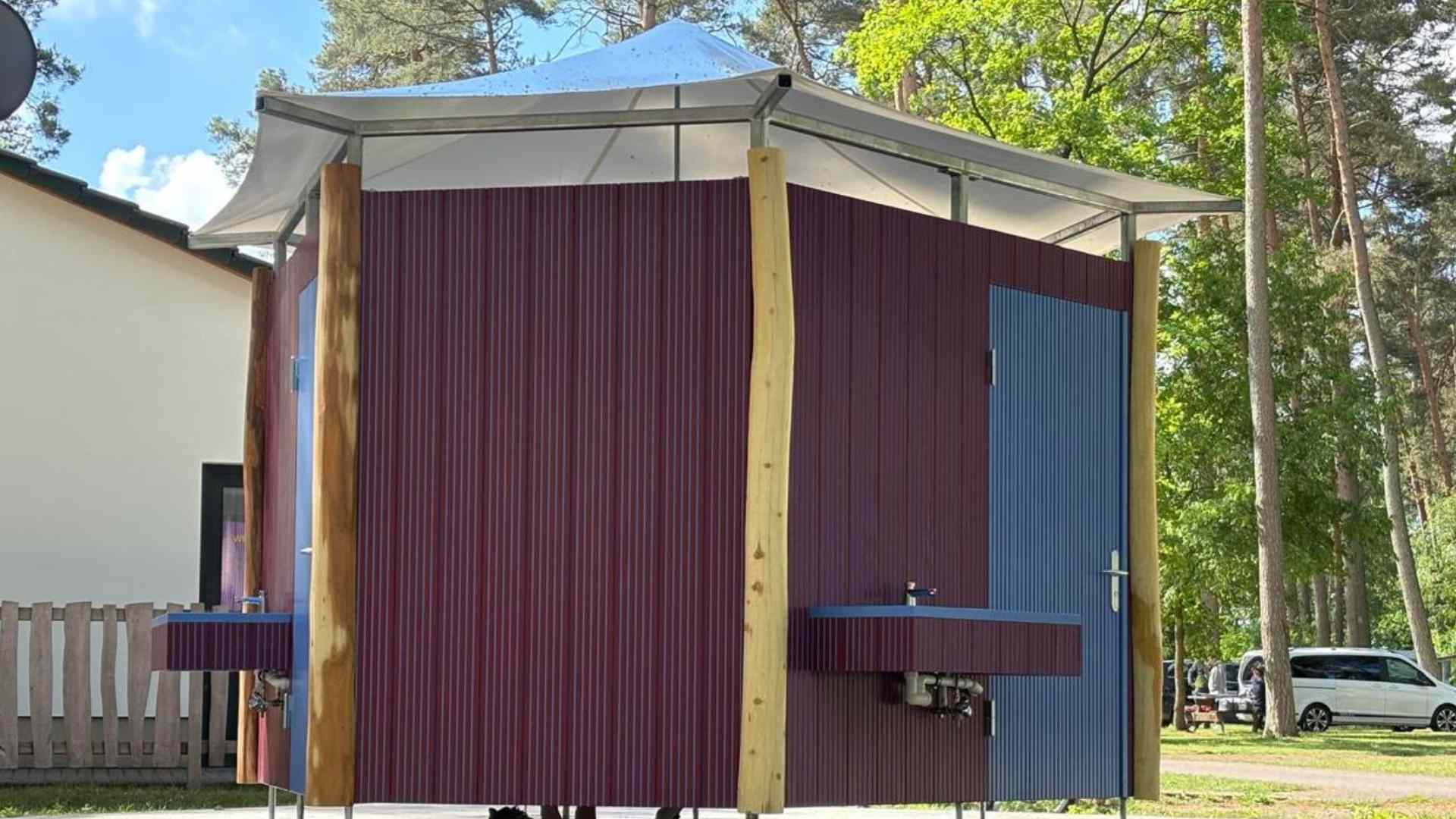 Für Frischluftliebhaber warten Außenduschen und die Gelegenheit, sich dann unter freiem Himmel die Zähne zu putzen und Hände zu waschen.