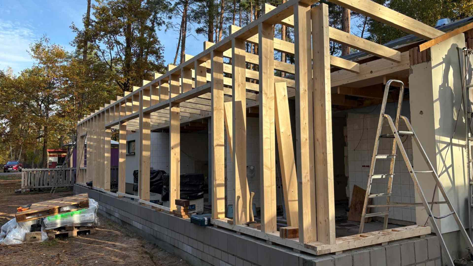 Knattercampings Waschhaus verändert sich gerade von klein und zweckmäßig, auf feiner und groß: Ab Frühsommer 2026 wird es auf Hochglanz gebracht: Mit einem geräumigen Wintergartenanbau für mehr Licht und Luft, neuen Oberflächen aus natürlichen, regionalen Materialien und einem frischen Look.